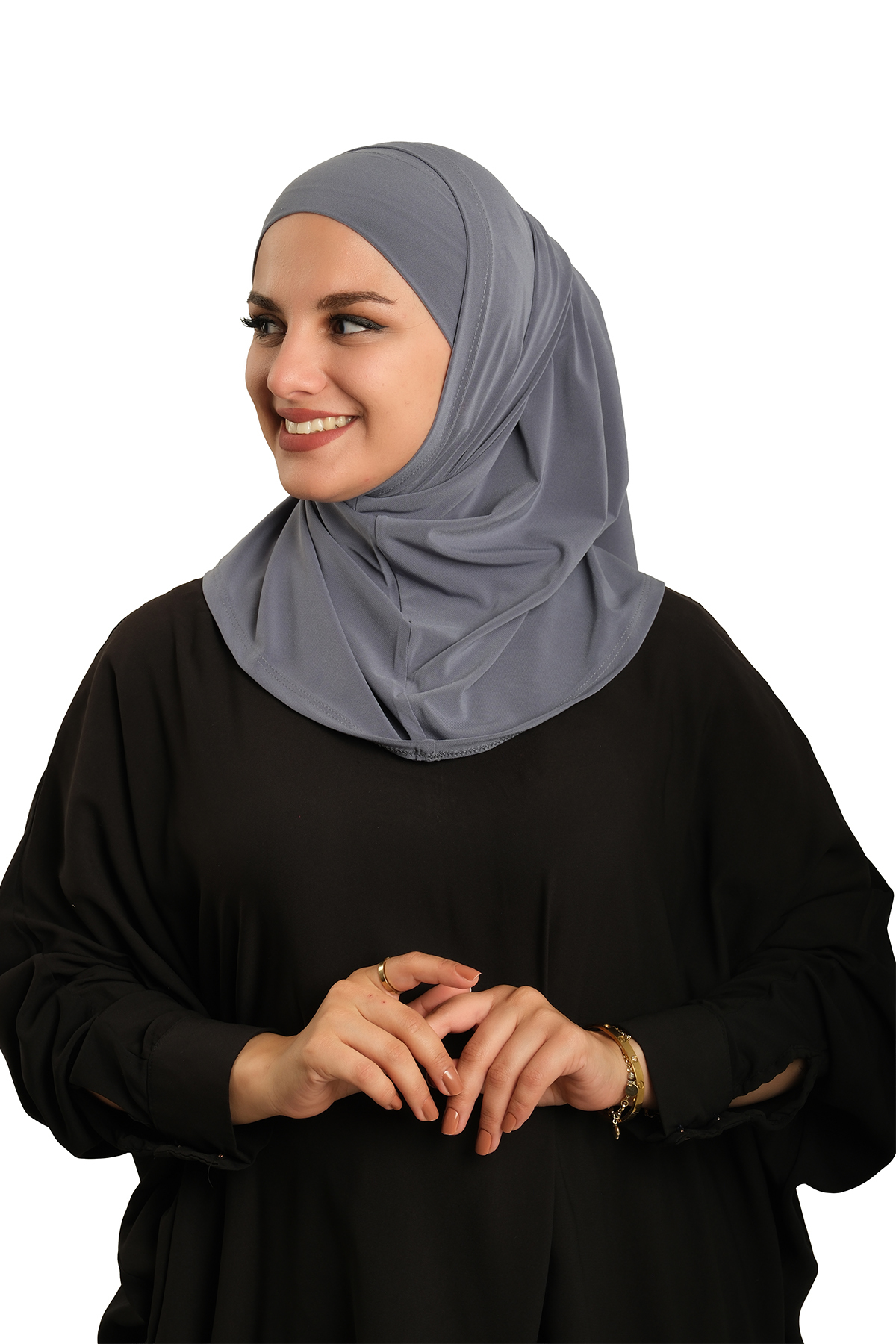 Antrasit Pratik Hazır Geçmeli Boru Boneli İkili Tesettür Eşarp Sandy Düz 2501_25
