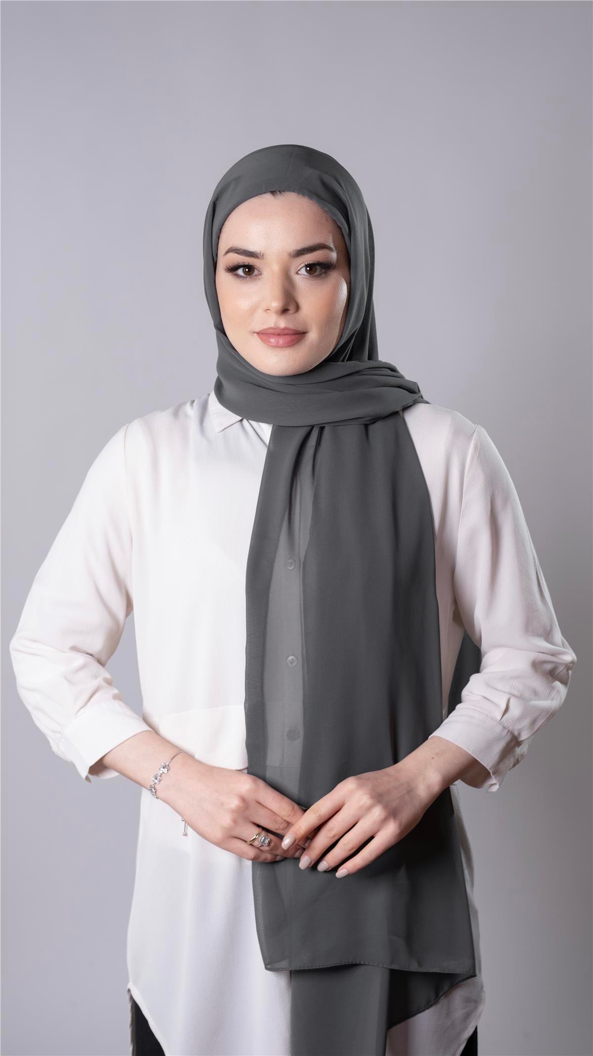 Antrasit Pratik Hazır Geçmeli Şal Şifon Kumaş Hijab Bone - Hürrem Bone 3009_25