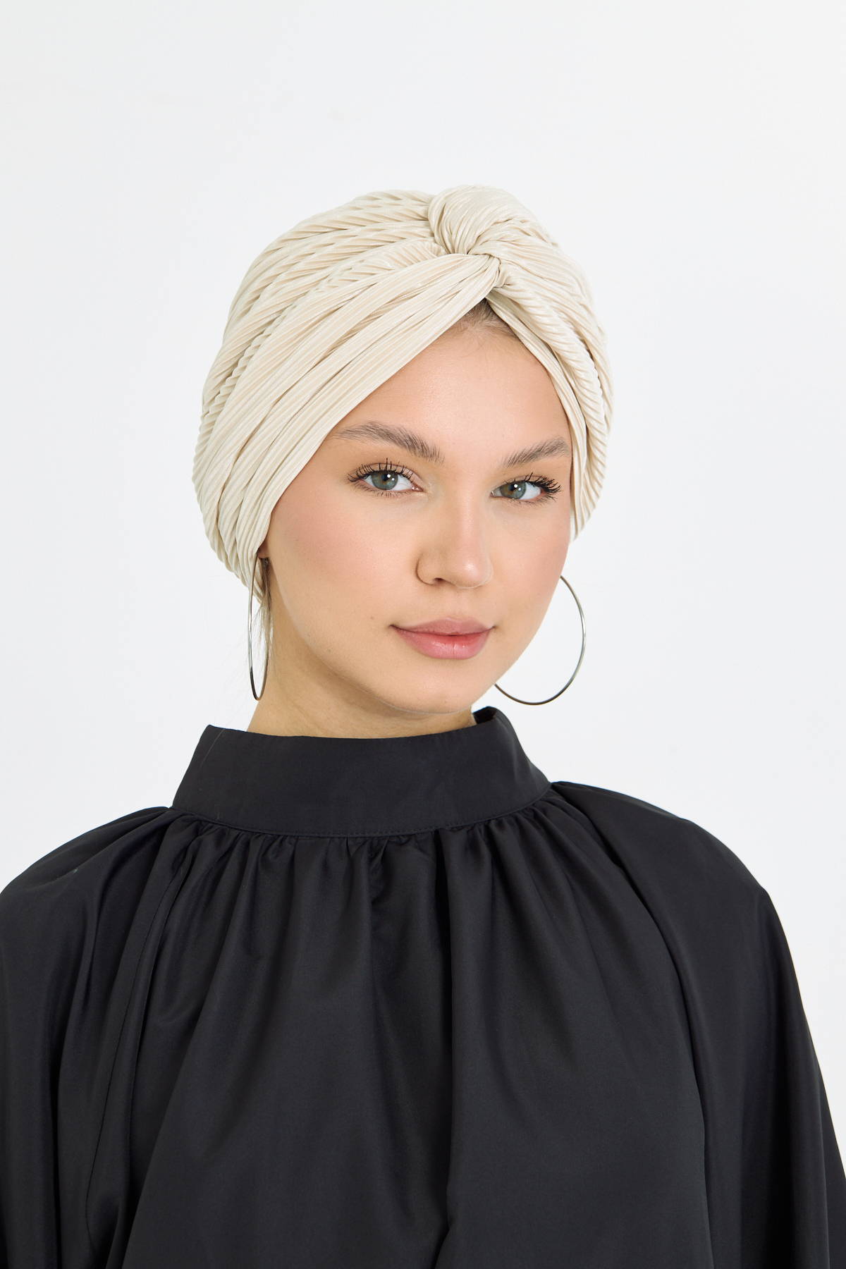 Bej Çapraz Büzgülü Tesettür Bone Fukuro Piliseli 2512_12