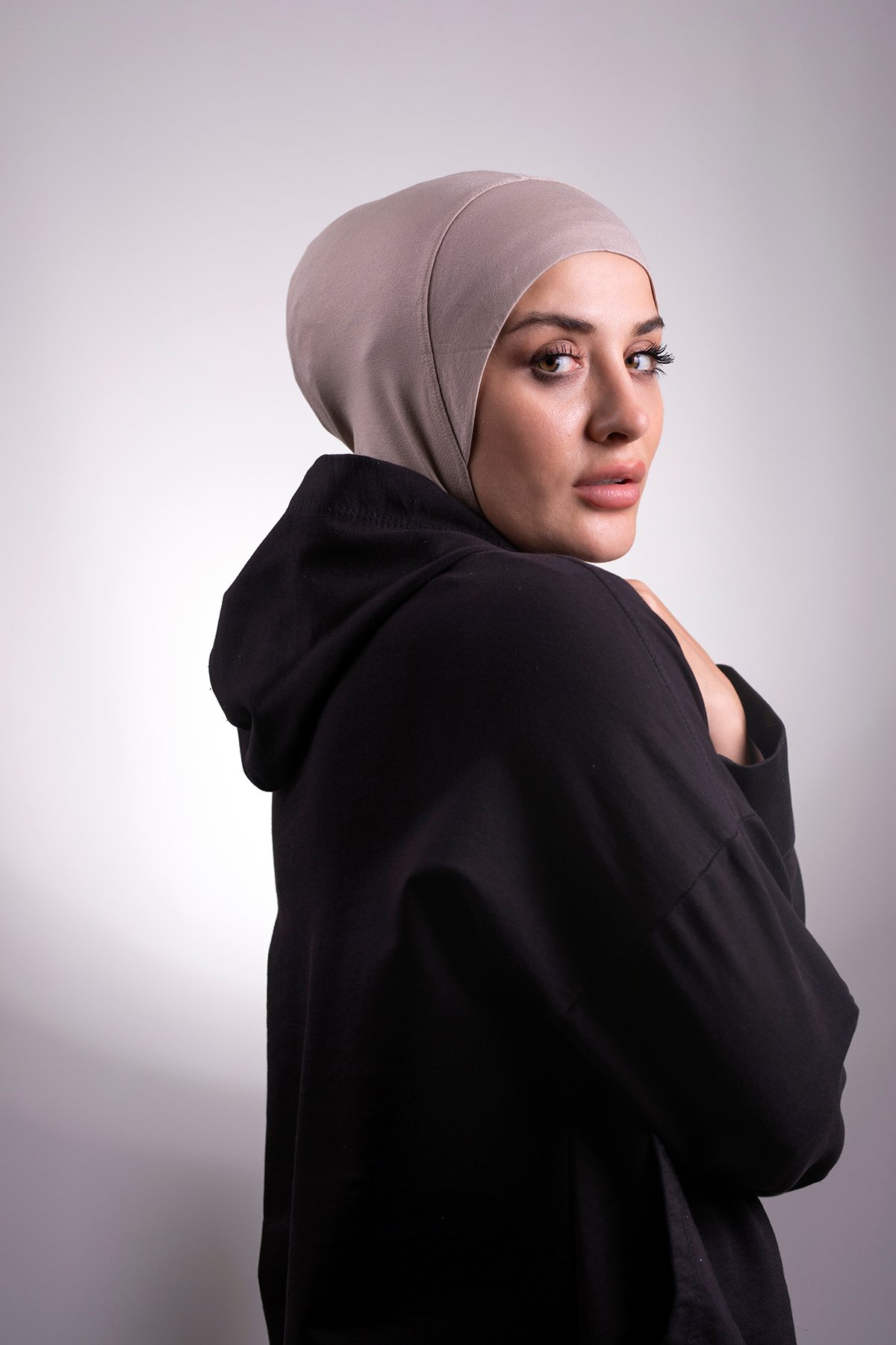 Bej Pratik Hazır Geçmeli Bone Viskon Kumaş Hijab Spor - Hürrem 2106