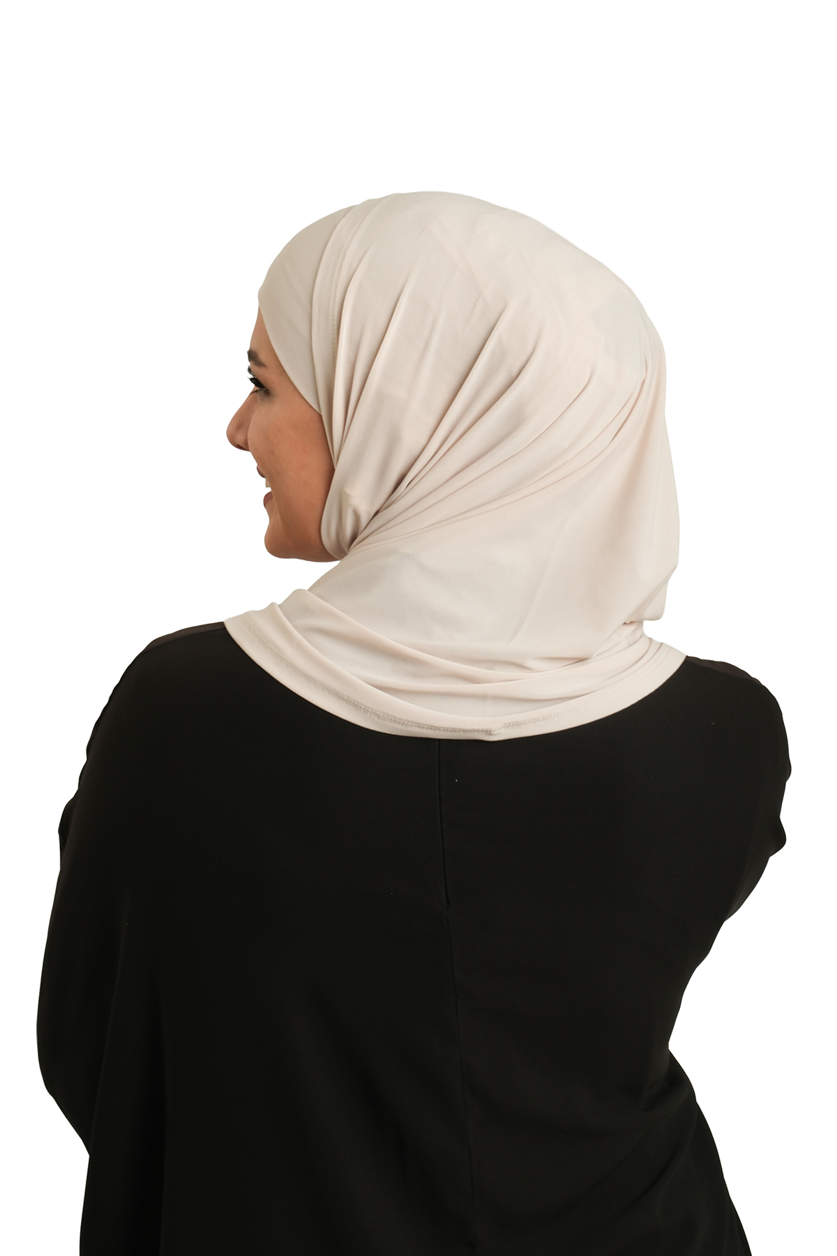 Bej Pratik Hazır Geçmeli Boru Boneli İkili Tesettür Eşarp Sandy Düz - Hürrem Bone 2501_12