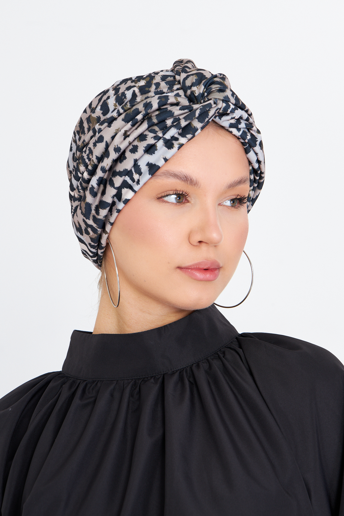 Gri Çapraz Büzgülü Tesettür Bone Sandy Leopar Desen 2511_15
