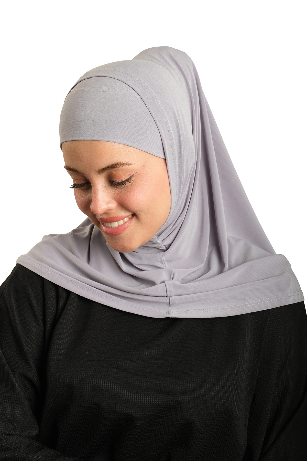 Gri Pratik Hazır Geçmeli Boru Boneli İkili Tesettür Eşarp Sandy Düz - Hürrem Bone 2501_15