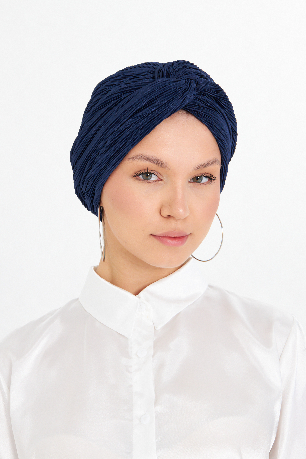 Lacivert Çapraz Büzgülü Tesettür Bone Fukuro Piliseli 2512_02