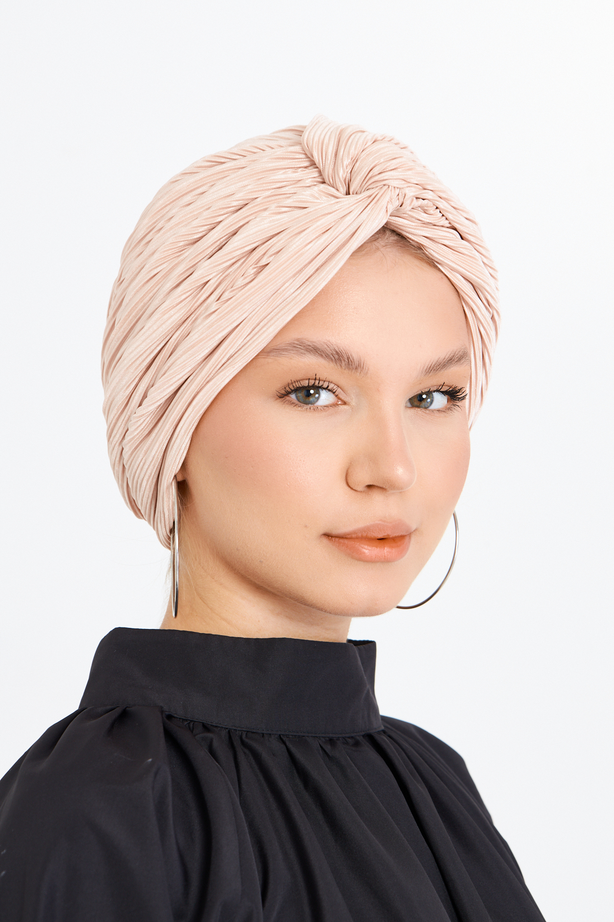Pudra Çapraz Büzgülü Tesettür Bone Fukuro Piliseli - Hürrem Bone 2512_06