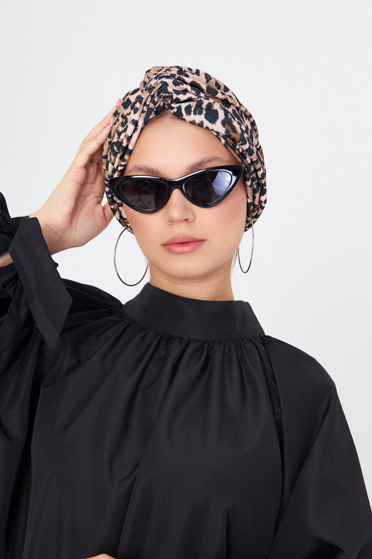 Pudra Çapraz Büzgülü Tesettür Bone Sandy Leopar Desen 2511_06