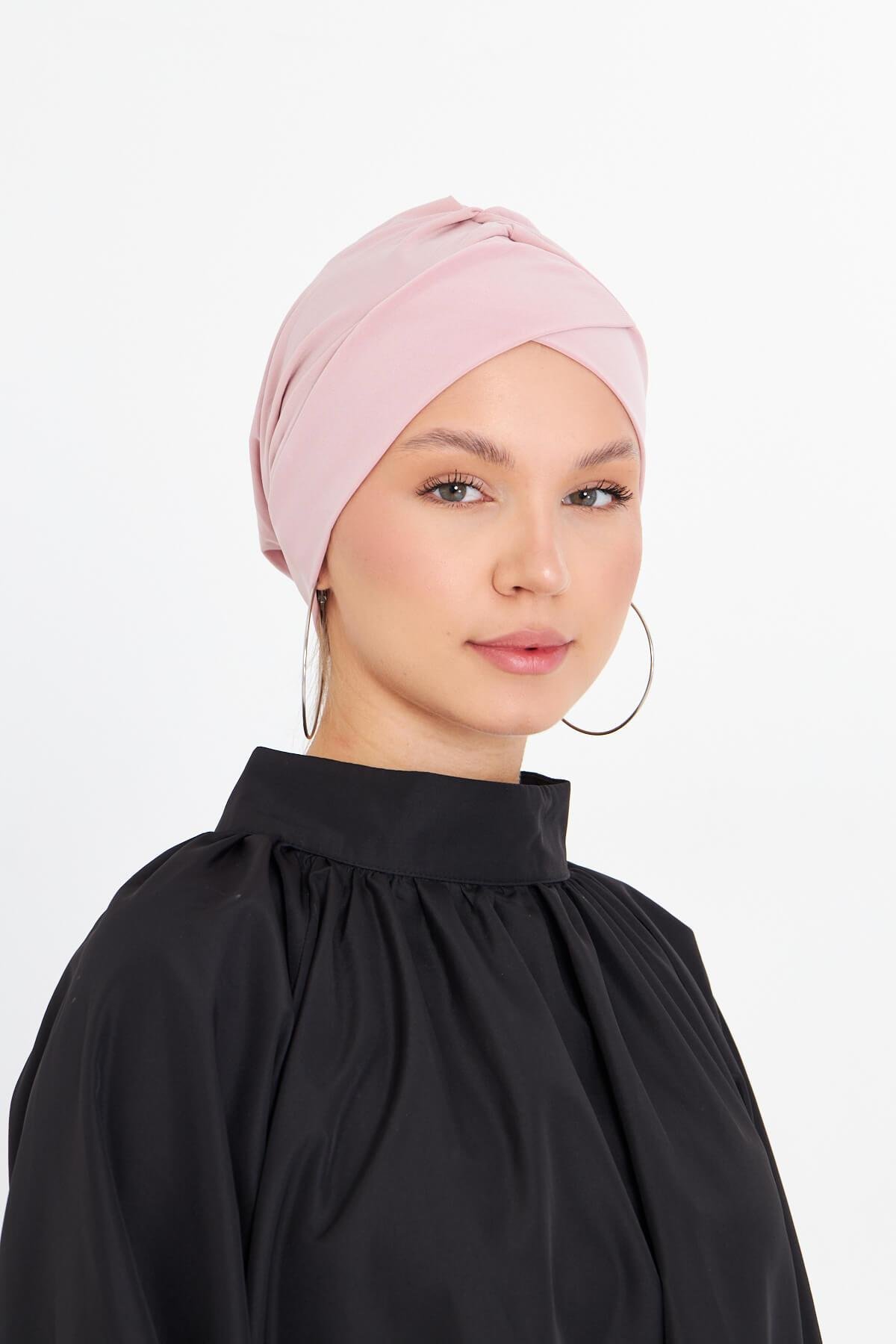 Pudra Pratik Hazır Geçmeli Tesettür Bone Sandy Kumaş Çapraz Büzgülü - Hürrem Bone 1801_06