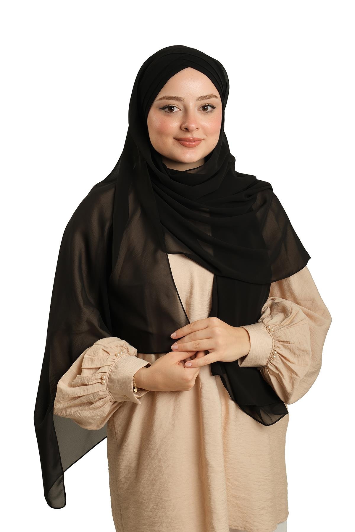 Siyah Arkadan Bağlamalı Şal Şifon Çapraz Üç Bantlı - Hürrem Bone 1457_01