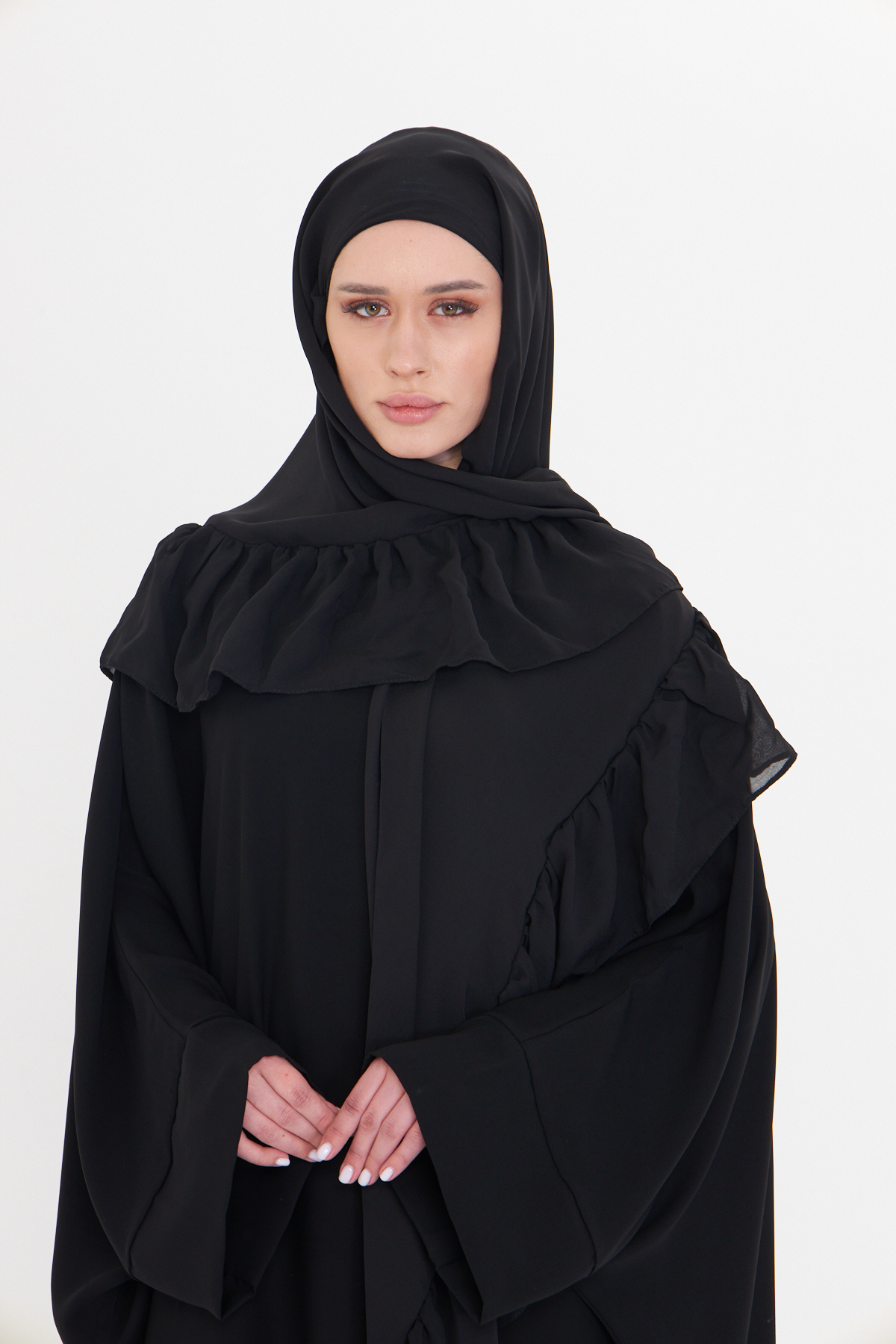 Siyah Arkadan Lastikli Şal Şifon Fırfırlı - Hürrem Bone 2411_01