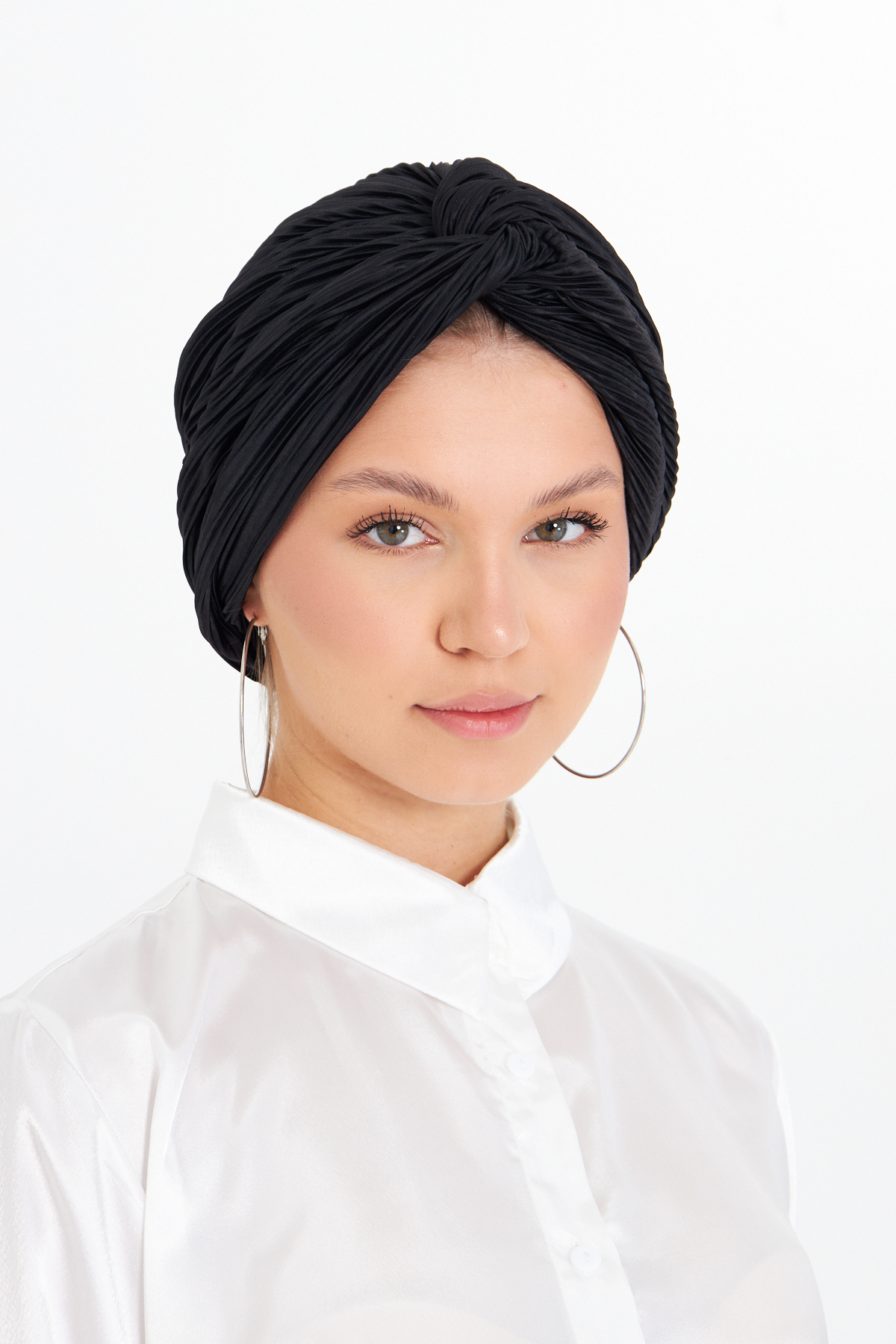 Siyah Çapraz Büzgülü Tesettür Bone Fukuro Piliseli 2512_01