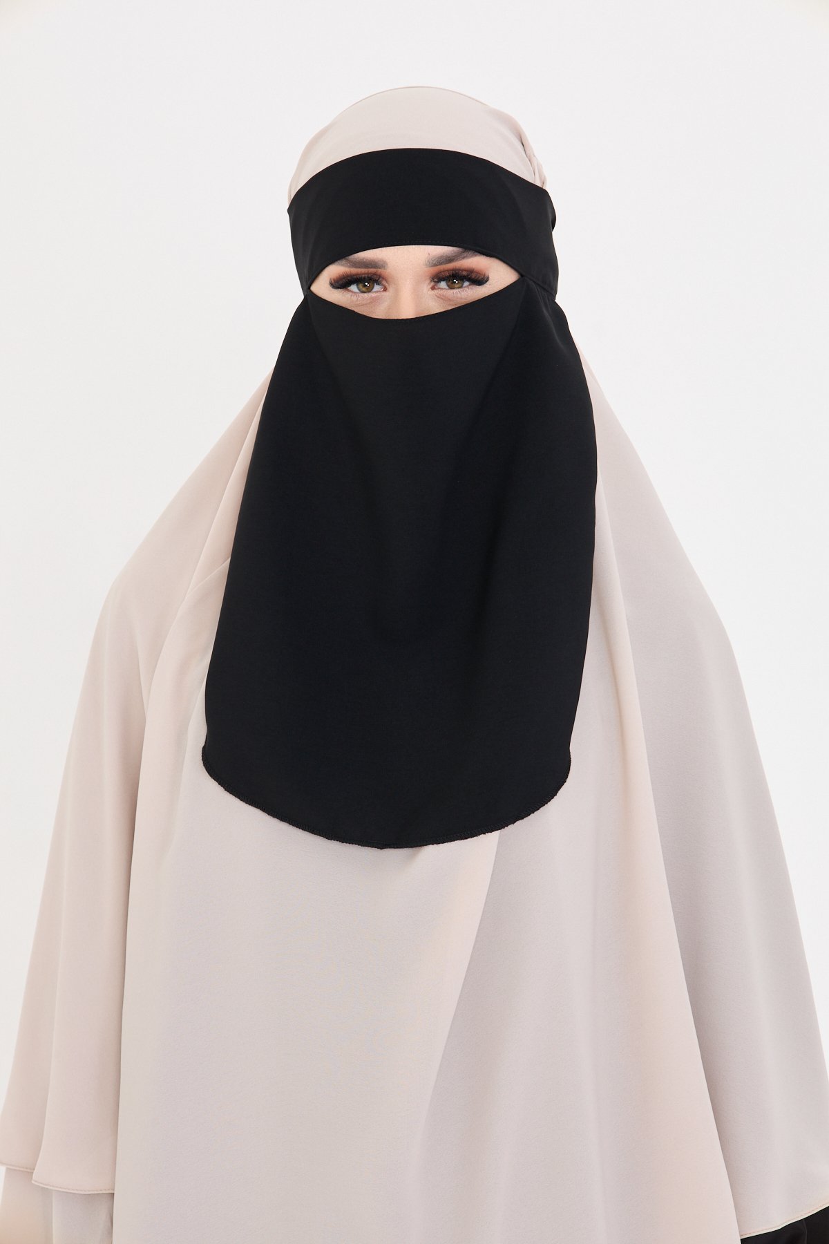 Siyah Tesettür Tek Katlı Peçe Medine İpeği Arkadan Bağlamalı - Hürrem Bone 1026_01