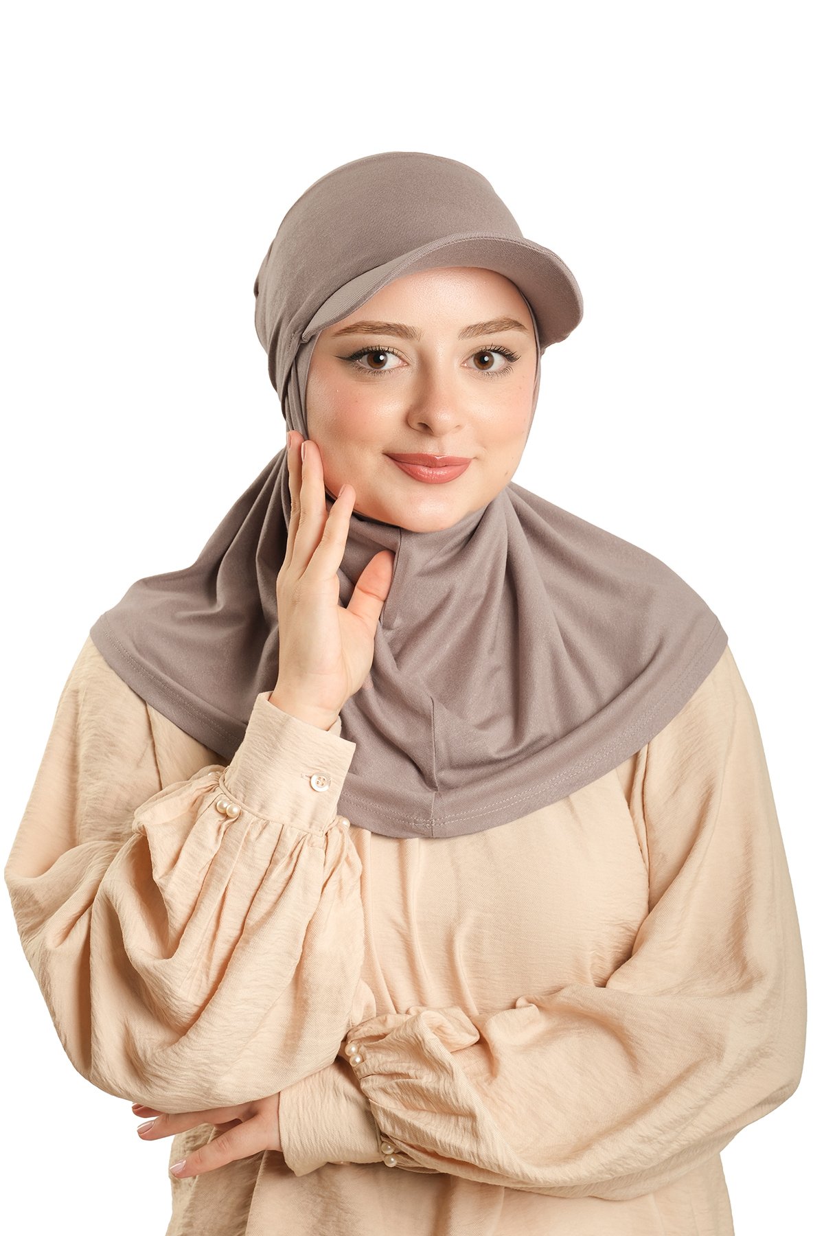 Vizon Pratik Hazır Geçmeli Şapkalı Tesettür Eşarp Viskon Düz 2513_10